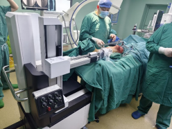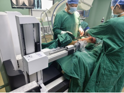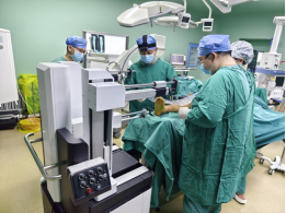 連接CO接骨機器人機械臂,調(diào)整操控桿機進行初步牽引復(fù)位。
